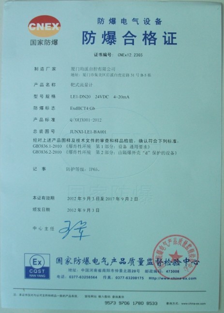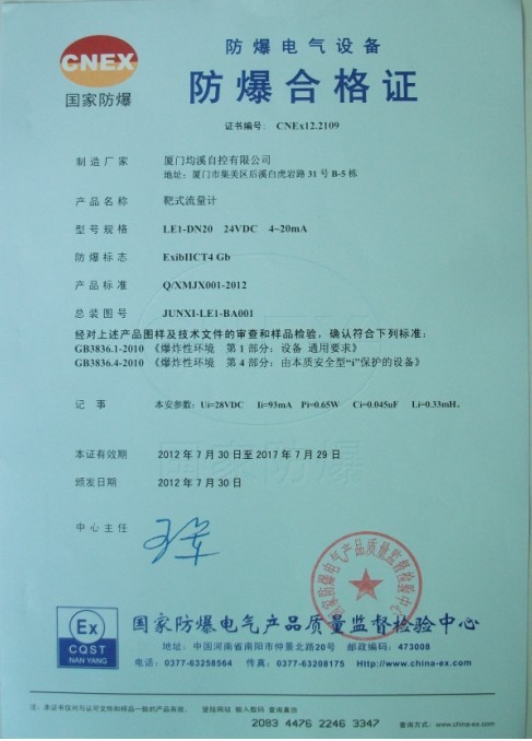 靶式流量計本安型檢驗報告
